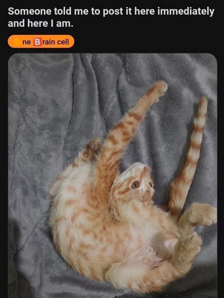 How can an orange cat's brain cat be studied to know if it's smaller or larger? They don't have one! Well, technically, their brain gets larger when it's their turn with the brain cell, and gets smaller again when it's going to another orange cat's head.