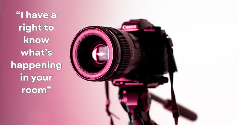 This is beyond crazy…it's so intimate to be in your room alone. It's why people chose to have their own rooms instead of sharing. How is one supposed to feel safe or secure when they now know they're being watched when they're in their own room? They change their clothes in there, and do a multitude of other things that one would never want other people to see. How do you come back from this?