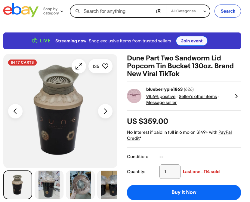 One of the first viral popcorn bucket sensations was created for the release of Dune 2, and to say that the buckets were unsightly is an understatement. Because of their grotesque appearance and suggestive shape, the Dune popcorn buckets became a sensation of their own, taking over social media feeds, podcast discussions, and even SNL skits. While the movie itself was a stand-alone Hollywood hit, some attribute the movie’s opening weekend success to the intense virality and chaotic mayhem surrounding the acquisition of a popcorn bucket. Earning over $500M in the opening weekend and selling out of popcorn buckets in the blink of an eye. AMC and Cinematix’s snack executives probably wrung their hands with glee, feeling like they cracked the code to a once-sinking ship.