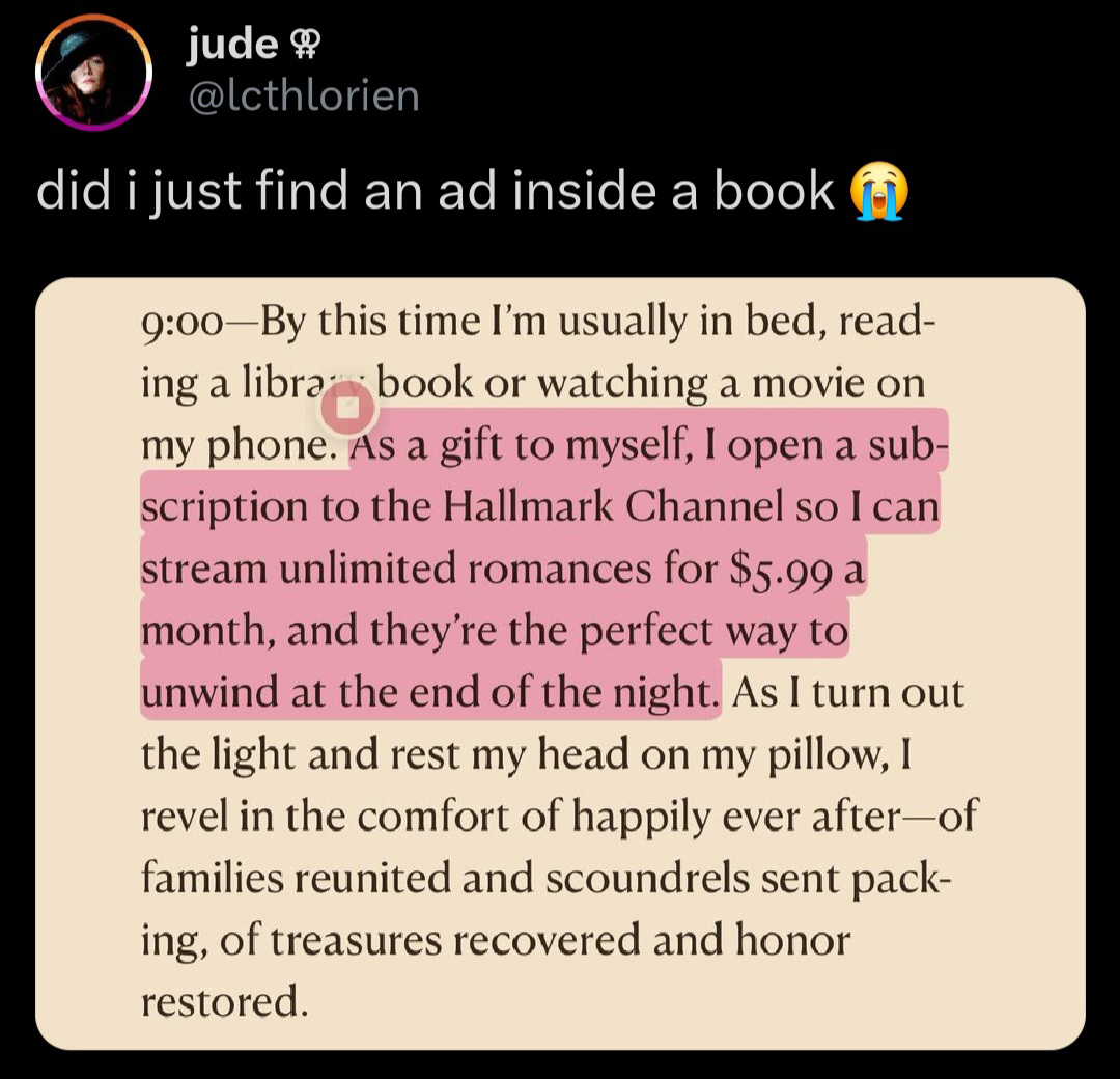 If this turns out to be the future of publishing, then maybe the only way to (kind of) avoid it is to only read older, physical books. We could also argue that somebody who is a regular reader will be more scrupulous than somebody who spends several hours a day on TikTok when it comes to avoiding advertisements mixed into their entertainment. At the same time, the average TikTok user and the average reader are more often than not the same person. Perhaps that is part of the reason that publishers feel emboldened to make a little extra money on the words they present to the world