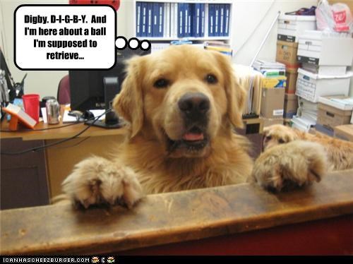 Digby. D-I-G-B-Y. And I'm here about a ball I'm supposed to retrieve...
