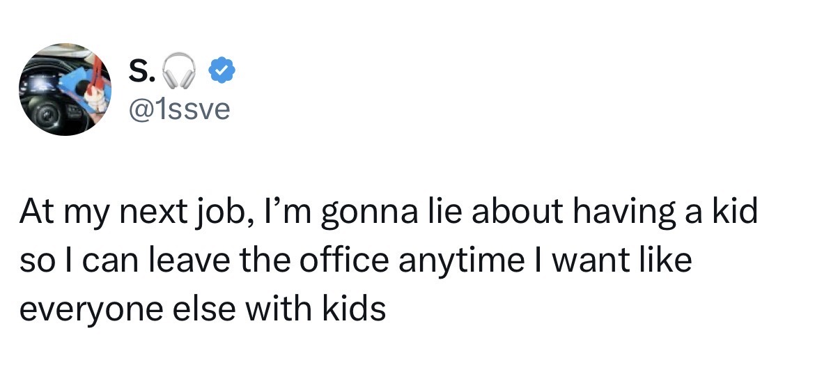 One childless employee came up with the borderline brilliant idea to lie about having a kid so they could leave their office whenever they wanted to.