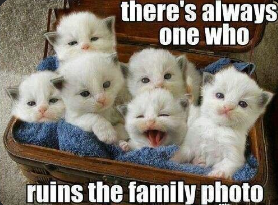 Family photos - all group photos really - are bound to fail. Having a purrfect photo of a group of people without anyone sneezing/laughing/closing their eyes may demand living under a dictatorship.