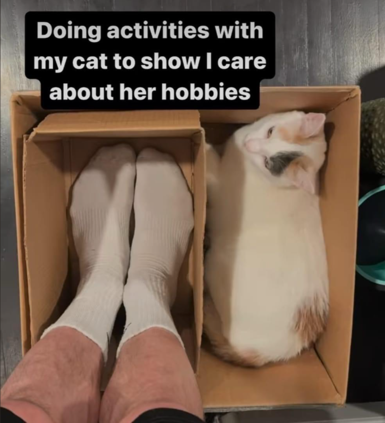 Cats' love for boxes is relatable. Boxes are very cozy when you come to think of it. They’re soft, but not too much. They're cozy, but somehow structured. Once the wetness issue is solved, they’ll make a great construction material.