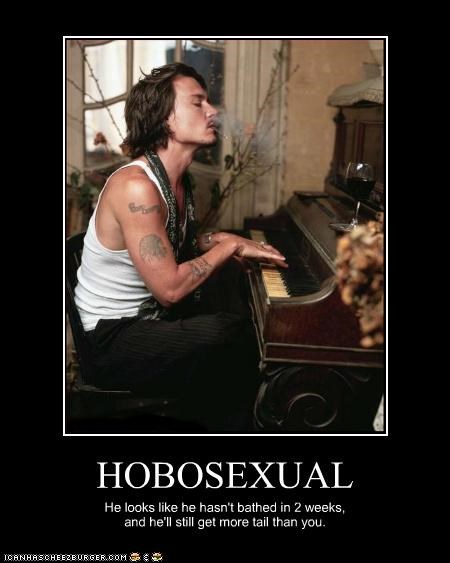 HOBOSEXUAL he looks like he hasn't bathed in two weeks, and he'll still get more tail than you. -Johnny Depp