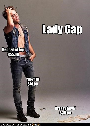 Lady Gap - bedazzled top, boy fit, greasy towel. -Robert Pattinson