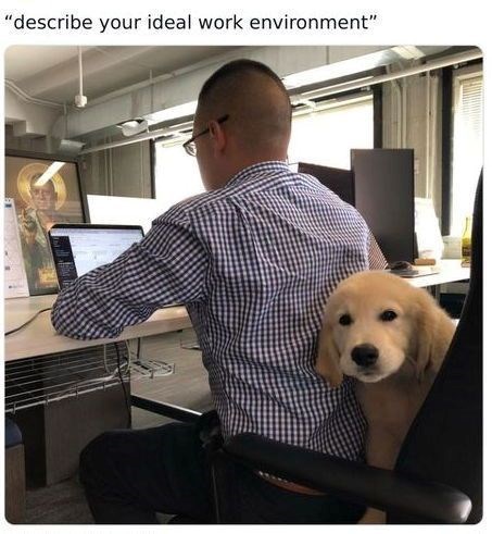Is this what your office looks like? Does your office contain a healthy amount of puppers? If so, the doggo happiness level of your work environment should be amazing. Congrats!