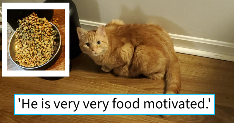 Cat pawrent buys automatic feeder to de-chonkify her fat cat, husband finds the happy feline face first in overflowing food fountain: I set the stupid feeder to give him 3 cups of food 3x that night!’