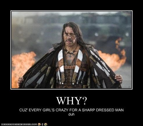 WHY? Cuz' every girl's crazy for a sharp dressed man. Duh. -Danny Trejo