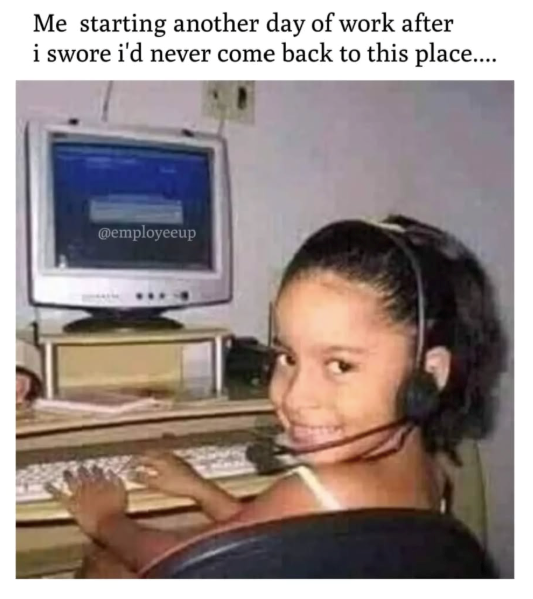Put a smile on that face and lock in to your customer service voice because employment is back in session! Try to cling to the funnier things today at work because despite hating your job, at least you're employed. Hoorah! You can rejoice at 5:01 when they unlock your ankle shackles.