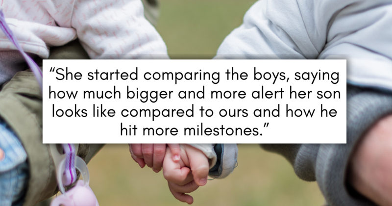 Our protagonist was probably bottling up these feelings for months. It's also hard to call out a new mother who is talking about their son; maybe they brushed it off every time because it's pretty normal to be excited about your baby hitting milestones. However, she was way to blatant with her weird competitiveness and totally crossed a line.