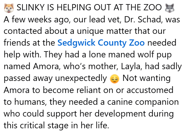 As much as we love seeing them together - and goodness, we love it so much - we are also very happy to know that there is a plan for what will happen in their future. We're thankful that there are other wolves for this pup to make a life with when he can no longer be with the dog, and that there is already an adopter on the line for this delightful doggo. Thank you. A million times thank you to everyone involved.