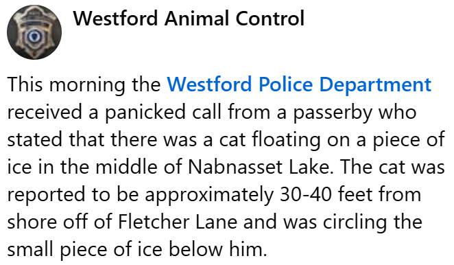 There is so much that went into saving this little guy. So many people had to come together - everyone from the woman who spotted the cat and called for help all the way to the two men who put everything aside to get into a boat, break the ice, and get the cat. And we are thankful to each and every one of them.
