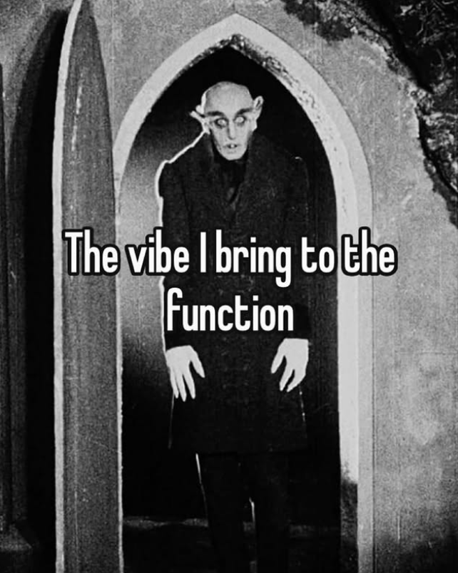 The vibe I bring to the function is a delusional, tired, half awake and cognizant Dracula type just waiting to go home to try and sleep even though I know I won't! So beware, I'm too fun when I'm loopy. Sleepless nights = too much silliness sometimes.