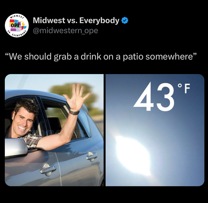 Why is there always that one guy in shorts? I see one every time I’m driving around town while I'm bundled up in my car with the seat warmers on high and the heat blasting. Sir, are you okay? It cannot be harder to throw on a pair of sweats than it is to walk through freezing wind with your legs fully exposed.