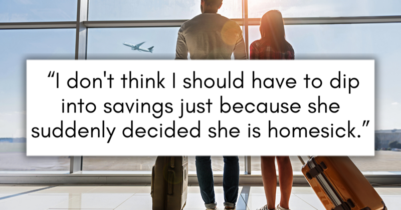 It's quite telling that he was willing to pay for her ticket and that she was not so keen on his compromise. She wanted her boyfriend there for easy money access when traveling, too.