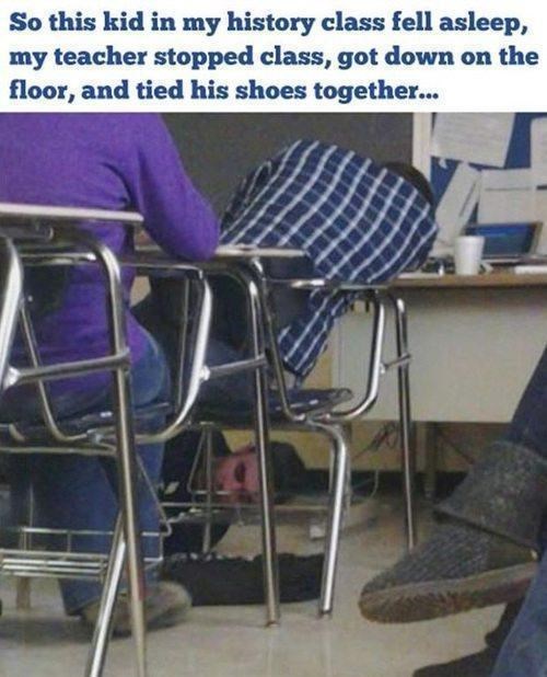 Chair - So this kid in my history class fell asleep, my teacher stopped class, got down on the floor, and tied his shoes together...