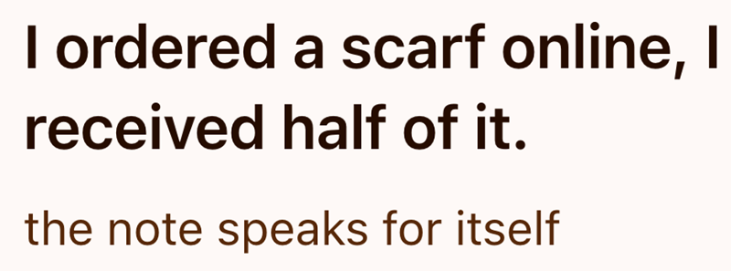 I ordered a scarf online, received half of it. the note speaks for itself |