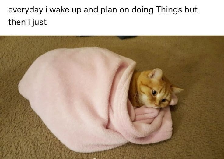 That's a very Caturday thing, amongst all the “Things” needed. Since this is a Caturday, you can easily roll yourself as a purrito and have no worries at all. At least until Monday.