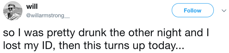 The hilarious, albeit meaningful moral of the story here is to not go out there and get yourself so sh*thoused that you can't keep a hold on your damn ID!