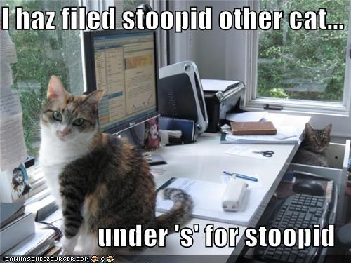I haz filed stoopid other cat... under 's' for stoopid