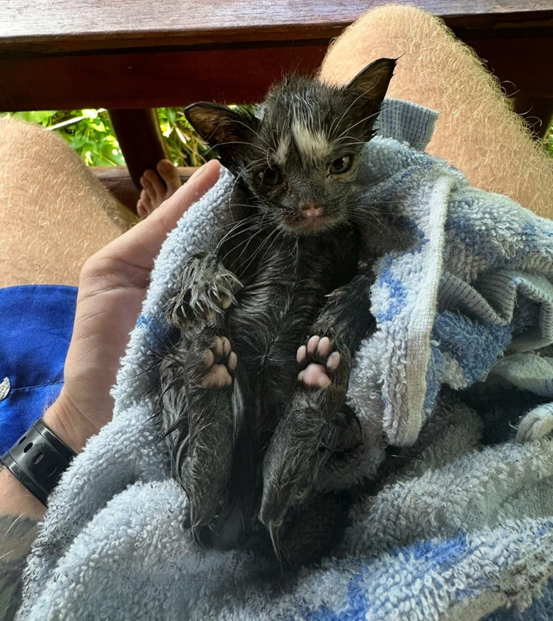 Thank you so, so much for saving this little beauty and taking such good care of it. We know that it must have been so difficult to get this guy cleaned and fluffed up. Heck, we know that most people would not have stopped to rescue a black kitty at all. But you did, and we are so thankful.