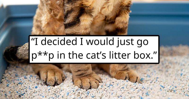 Our reaction to this could have gone in a bunch of different directions. Generally, we do not recommend using your cat's litterbox for your own… needs. The cats deserve better than that. But in this situation, we will totally let that slide. Because he deserved it. And really, it seems like the cats only respect you more after doing that, so they must have known that he deserved it too.