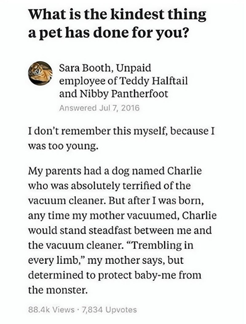 We love how many people decided to share their own stories following this meme going viral. We love how many stories there are to tell. Love, yes, but we are not surprised by it. Dogs are fearless when it comes to protecting the people that they love.