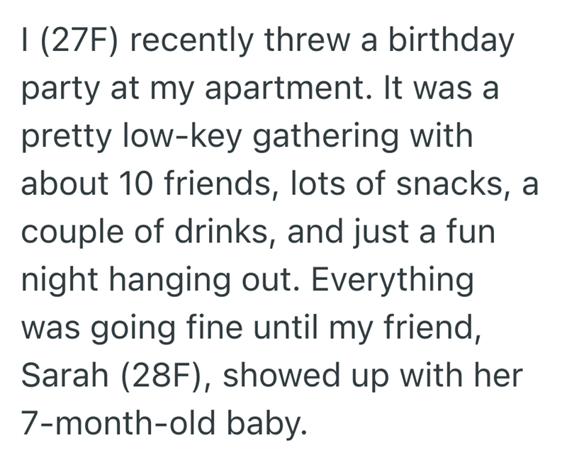 "AITA for asking my friend to leave my birthday party because she brought her crying baby?"