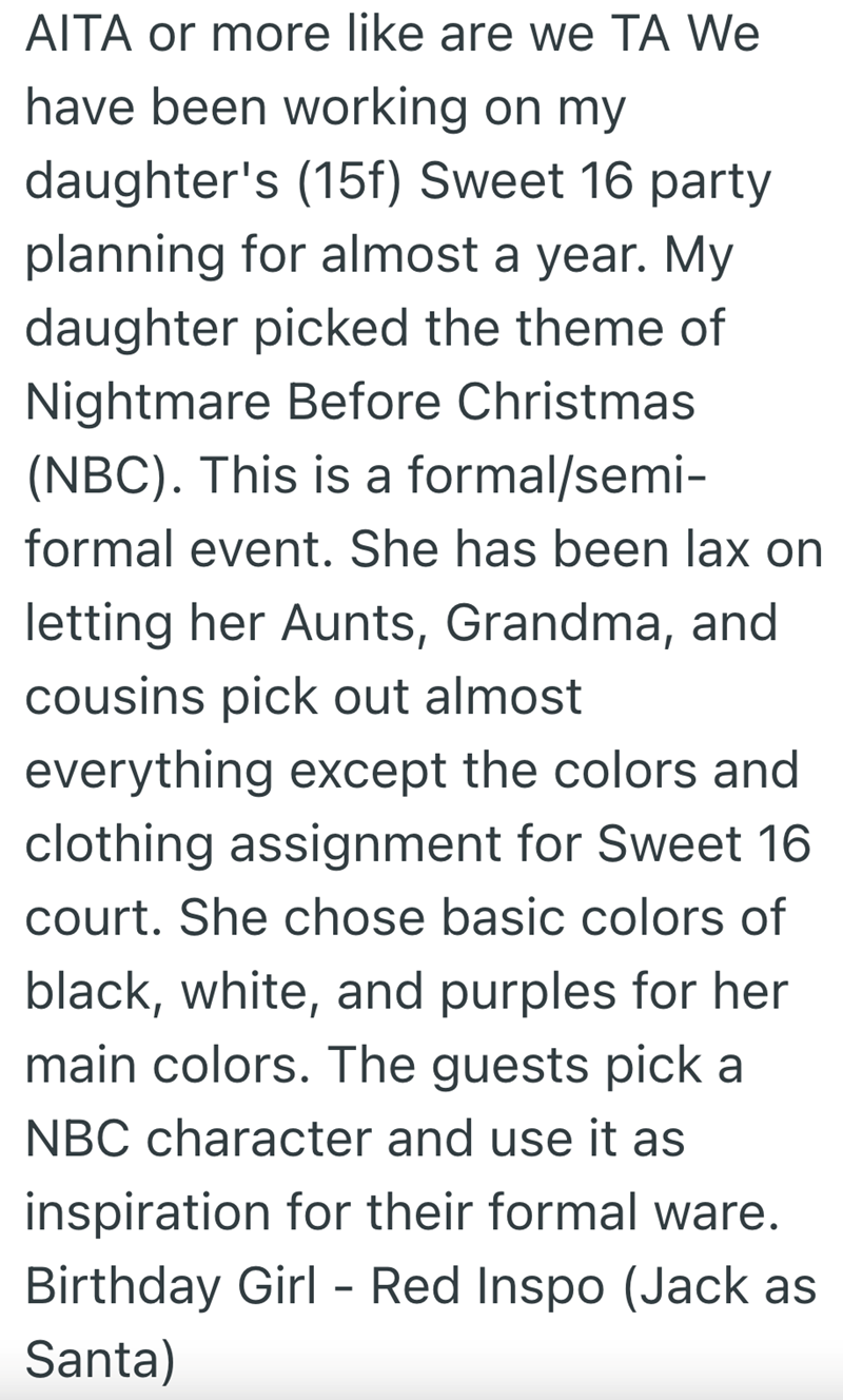 "AITA for siding with my daughter (15f) when she enforced the no RED dress code w/ my aunt for her sweet 16"