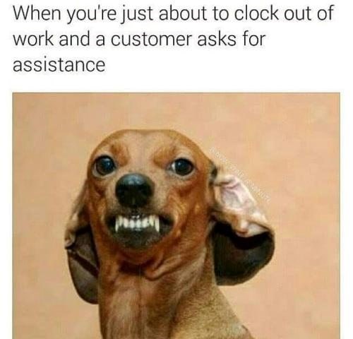 Why do customer service jobs involve customers? Can these jobs just have the service without customers? Are hoomans allowed to do this doggo face to customers when they are customering?