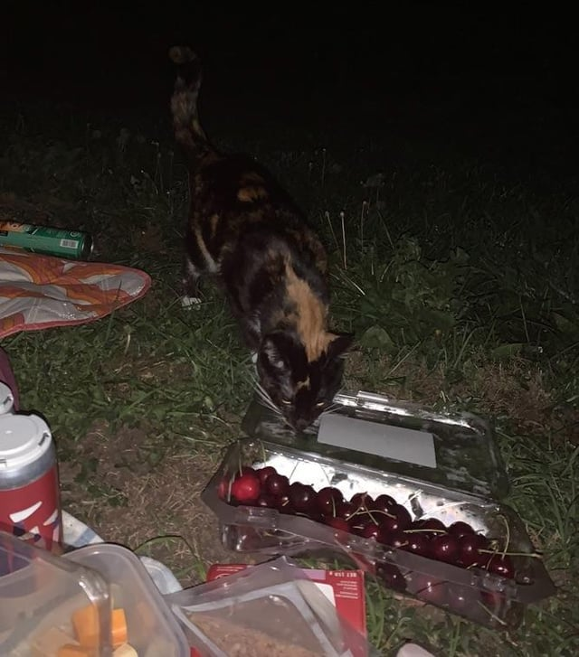 "My baby girl. Found us on a late night picnic, then never stopped cuddling me"