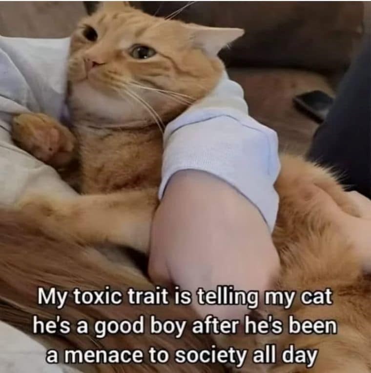 And we will keep doing it! Without any shame whatsoever! Because being a menace does not mean that they are also good and purrfect and beautiful, and we will make sure that they know that they are loved unconditionally, no matter how many couches they scratch up and how many thousands of dollars we have to spend because of them.
