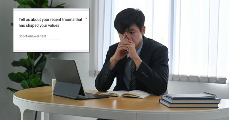 This is what one prospective intern discovered when filling out a Google form to apply for an internship. One of the compulsory questions asked applicants to explain their recent trauma, and how it āshaped [their] valuesā. He was understandably baffled at the question, and so was the rest of social media. It is hardly a positive indication of what working there is like.