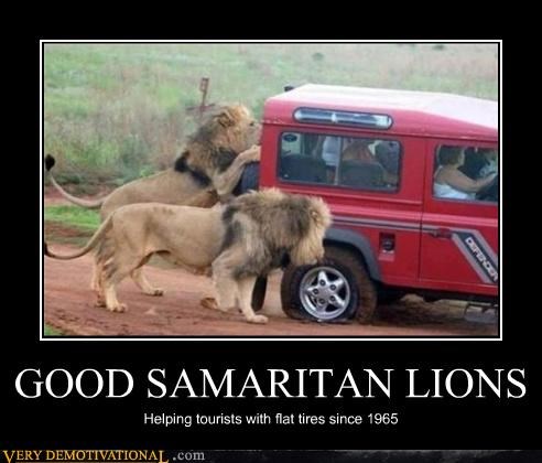 GOOD SAMARITAN LIONS Helping tourists with flat tires since 1965