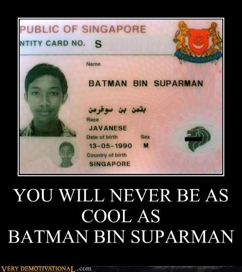 YOU WILL NEVER BE AS COOL AS BATMAN BIN SUPARMAN