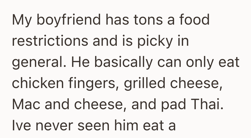 That's the situation one woman found herself in when she entered a new relationship. While everything else was going well, she wasn't sure if she could handle his picky eating. It came to a head when she was about to go on vacation and thought about what it would mean for them. Read on for the story and see what you think.