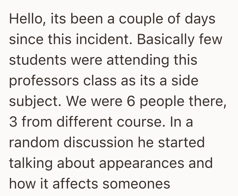 AITA for telling one of my professors that how I look and my body weight is none of his concern?