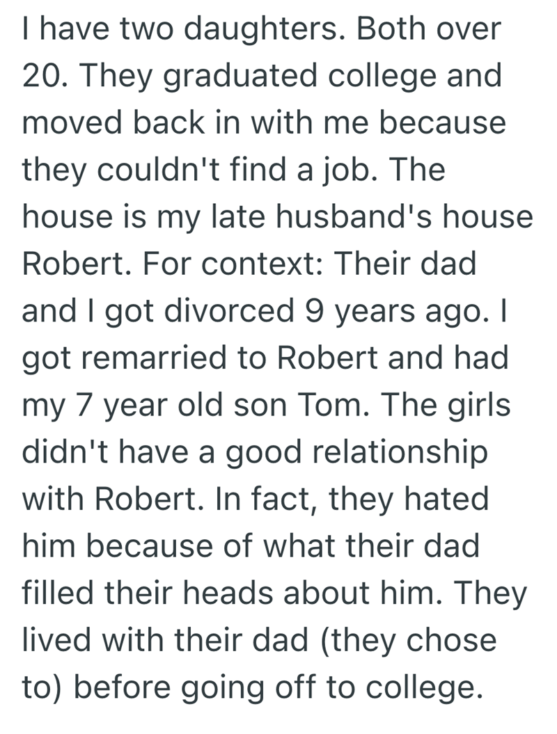 "AITAH for giving my daughters one week to leave my house after what they did to their half brother?"