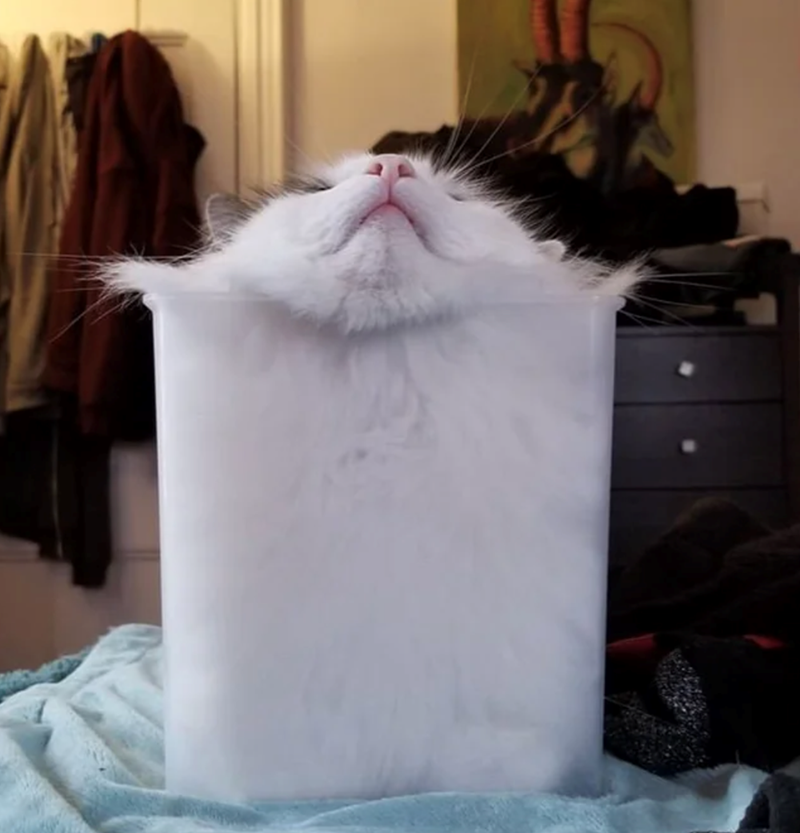 This cat says, if it fits, I sits… and if it doesn’t, I’ll just melt and make it fit anyway. That’s the true magic of a liquid cat in action!