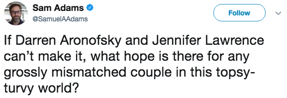 Jennifer Lawrence just parted ways with her 48-year-old boyfriend, Darren Aronofsky, after dating for a little over a year. The two met and became friends during their time working together on the movie, mother! where they eventually transitioned into dating. Once news of their breakup spread, Twitter came ready with the ruthless jokes that naturally centered on the notoriously brutally rated mother! Let's just say that movie didn't land too well with audiences....