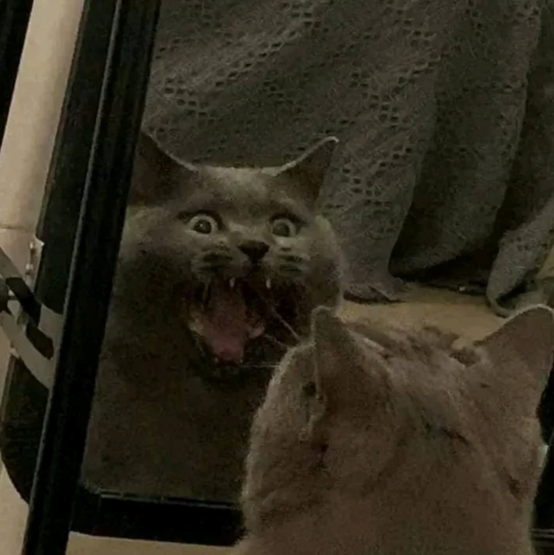 That magical moment when a cat meets their reflection and realizes they’re the main character. Equal parts confusion, drama, and existential crisis. Pure cinematic gold every single time.
