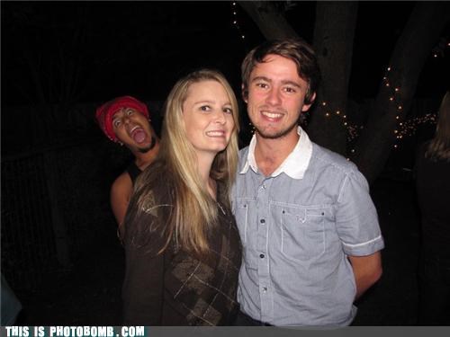 It seems like this Antoine Dodson impersonator has got the wrong idea, as demonstrated by the uncomfortable smiles of the people being photobombed.