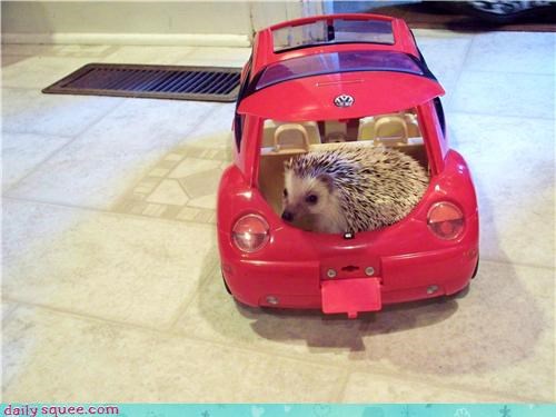 Soy Llama says: "This is my little hedgehog, Mr. Pickles, in my friend's Barbie car!" Wow Mr. Pickles that's a nice set of wheels you got there, can I get a ride? - Sally Squeeps