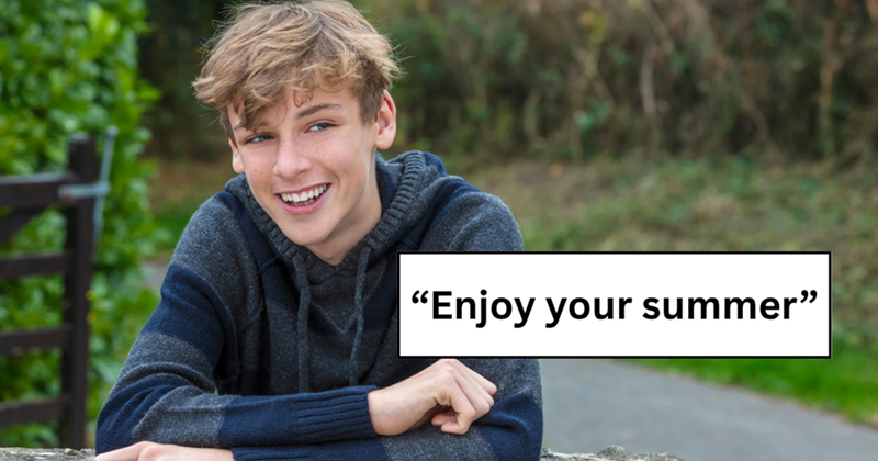 The family really can't do anything to force him. It's great that he's sticking up for himself in this situation. He doesn't even live at home, so it's not like they can make him stay home to watch the kids. They're powerless, and it's a good thing because he deserves to have his summer break.