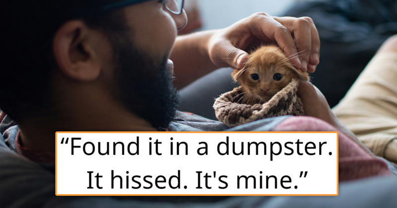 Man finds scraggly ginger kitten in a dumpster, it hisses at him, he adopts it with no questions asked: '[He] looked up at me and his eyes said, "I live with you now."'