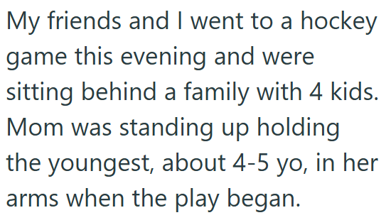 The mom in this story did a lot worse than just “mezzanine leaning.” She stood up during the middle of a hockey play, insisting that it was the only way her young son would be able to enjoy the game. Of course, she huffed and puffed when someone had the guts to call her out.