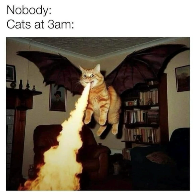 It’s always 3 a.m. when your cat decides it’s time to tell you all about their day. Complete with zoomies, meows, and chaos. Thanks buddy, I was sleeping!