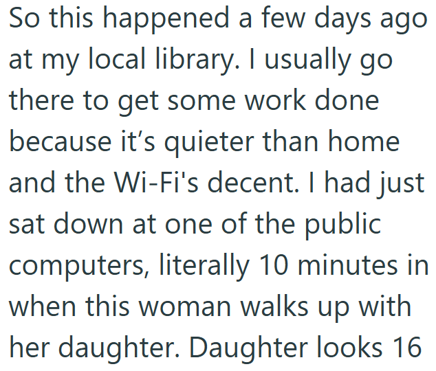 The librarian in this story refuses to tolerate an entitled patron's bad behavior. A dude who was just trying to get his work done was getting harassed by a Karen and her teenage daughter. They desperately wanted him to give up his computer, but he didn't budge, and neither did the librarian.