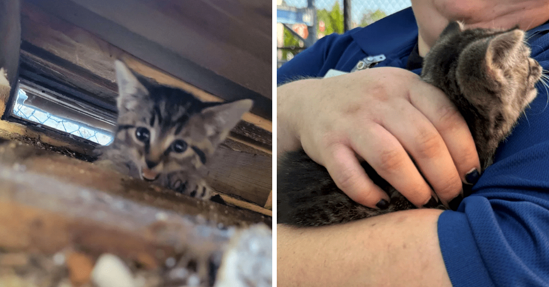‘This cat NEEDS to come out right now’: 5 Lowe's employees rescue ‘Dirt’ the gray tabby kitten from a gardening pallet, utilizing canned tuna and their pawrent persistence to lure her to safety